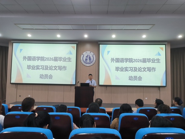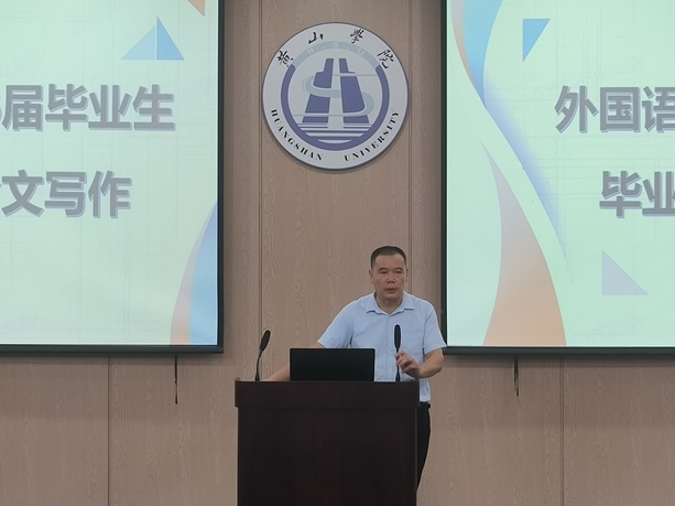 英语专业教研室主任王毅聪和日语专业教研室主任李艳分别就各专业毕业论文的写作安排与要求作了详细说明,包括选题方向、写作流程、时间安排及答辩准备等,为后期论文写作提供了具体指导。