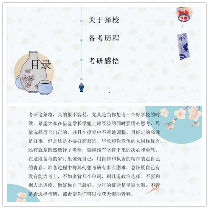 16日语班沈知琴围绕择校、备考、考研感悟三个方面做出了详细的论述。关于择校方面,她提到,报考一个院校和专业,首先要对目标院校有基本的了解,如学校的地理位置、目标院校的重要程度、往年招生计划数据、报考人数等等。随后,她推荐了政治、翻译硕士日语、日语翻译基础、汉语写作与百科知识方面的书籍,并提到报考院校推荐书目考察范围较广,需注重平时积累。