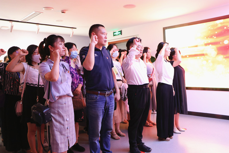 党员们先后参观了星火燎原、光辉足迹、热血丰碑、党旗飘飘四个展区。丰富的历史图片、文献视频资料、图表、实物展品、雕塑等让教师们全面、系统地了解到皖南人民波澜壮阔、可歌可泣的革命斗争史和革命前辈们信仰坚定、对党忠诚,百折不挠、无私无畏的奋斗精神。参观结束后,党员们重温了入党誓词。