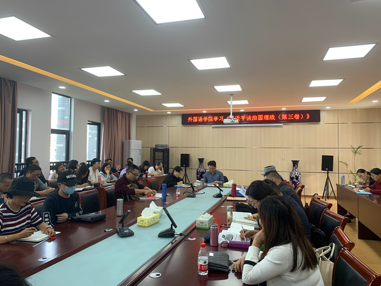 10月14日下午,beat365在线唯一官网党委组织教职工在逸夫综合楼5402会议室学习《习近平谈治国理政》第三卷。该院全体教师参加学习会,报告会由该院党委书记黄先进主持。