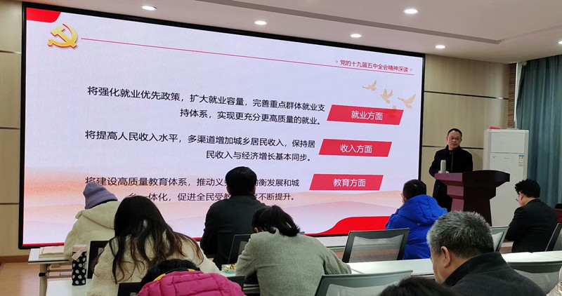 12月2日下午,beat365在线唯一官网党委在学院5306徽文化传播中心举办党的十九届五中全会精神宣讲会,马克思主义学院胡克春副教授应邀作专题辅导报告,该院师生党员、入党积极分子参加报告会。会议由该院党委书记黄先进主持。