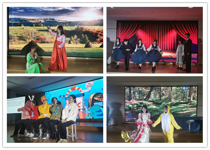 经评选,beat365在线唯一官网《海绵宝宝竞选记》、文化与传播学院《中国月嫂来我家》荣获一等奖;beat365在线唯一官网《其名为羁绊的真物》、《音乐之声》、《家有儿女》荣获二等奖;艺术学院《演员面试》、beat365在线唯一官网《新编白雪公主》、《甄嬛传之舒痕胶真相》、《花木兰之功成归乡》荣获三等奖。本次比赛以前期配音、现场表演的形式进行,参赛作品风格多样、题材丰富,从展现动画作品、经典电影片段到还原影视作品。日语短剧《其名为羁绊的真物》将动漫作品搬上舞台,演员们的表演惟妙惟肖,还原度极高,深深吸引了在场的观众;英语短剧《新编白雪公主》采用反串形式,带来了不一样的童话故事,演员们用幽默诙谐的表演方式成功点燃了现场气氛, 赢得了观众的阵阵掌声;英语短剧《音乐之声》完美再现电影经典,令人回味无穷。各参赛队伍表演投入,口语表达流畅,用英语、日语为观众呈现了一场精彩的视听盛宴。最后,本次比赛在beat365在线唯一官网两名20级同学表演的英语歌曲《Wonderful U》中落下了帷幕。