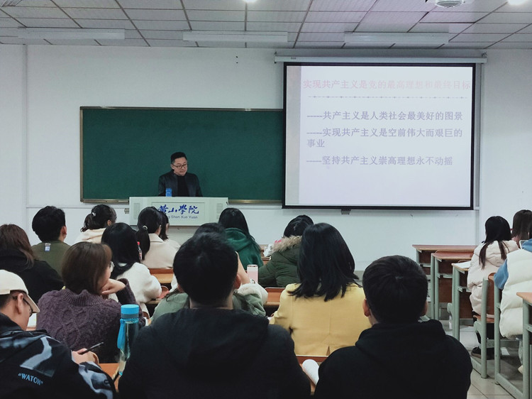 11月25日下午, beat365在线唯一官网教工第一党支部书记郭飞在逸夫综合楼5505教室为54期入党积极分子作题为“党的纲领和基本路线”专题党课。