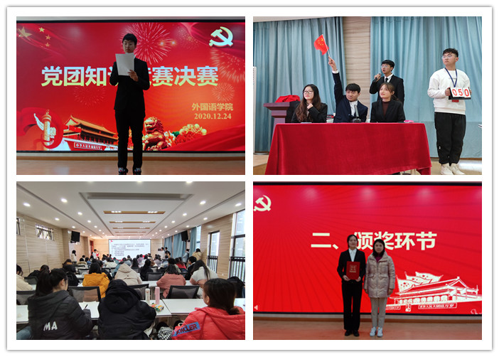 本次比赛分为选择题、填空题、简答题三项。题目从党章、党史、共青团史等多个方面综合考察参赛选手对党团知识的了解,集知识性、时代性于一身。比赛分为三轮,第一轮为轮流答题环节,累计得分最高的四支队伍晋级二三轮比赛;二三轮为抢答环节,第二轮由轮胜出的四支队伍抽签决定答题对手,第三轮冠军争夺战则为第二轮胜出的两支队伍进行最终对决。比赛中,各支队伍身着正装,意气风发,答题过程井然有序,每到精彩之时,现场观众掌声不断,比赛气氛异常热烈。经过层层比拼,19日语班荣获一等奖,19英语3班荣获二等奖,19英语1班和20英语1班荣获三等奖,20英语2班、20英语4班、20英语5班及19英语2班荣获优秀奖。