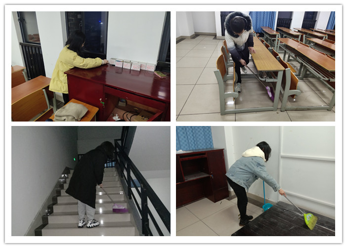 本次活动分为楼道清扫、教室清扫和办公室清扫三个部分。活动期间,志愿者们不怕脏、不怕累,细致仔细,充分体现了外院学子勤勉务实、乐于奉献的良好风貌。经过大家的努力,教室的门窗、黑板、桌椅、地面一尘不染,楼道内的塑料袋、废纸屑等垃圾不见踪影,卫生死角也全被清理干净。