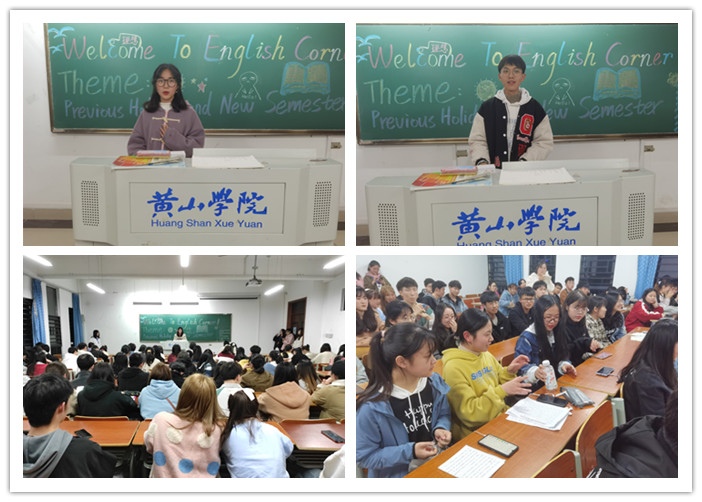 活动开始前,部分志愿者提前到达指定教室,在黑板上绘制与本期主题相关的板报;同学们在志愿者的引导下有序入座并进行签到。在两位主持人介绍完本期的主题后,活动拉开了序幕。活动分为小组讨论、上台发言和小游戏三个环节。在小组讨论环节中,同学们在志愿者和主持人的带领下互相分享自己的寒假生活趣事、对开学考试的反思与总结以及对新学期的期待与规划。经过半个小时的讨论后,主持人抽取部分同学上台发言。上台发言的同学们抛开了对开口说英语的胆怯,竭尽全力用自己累积的词汇讲述自己的故事。发言环节结束后,主持人带领大家进行“击鼓传花“的游戏,被选中的同学纷纷上台进行才艺展示,现场气氛十分活跃。来自20日语的志愿者王钰表示,英语角对提高同学们自身素质、自我发展能力以及自信心有很大的帮助,同时它也以另一种轻松的不同于讲堂教学的方式给广大同学供给了锻炼口语的机会,激发了同学们学习英语的热情。