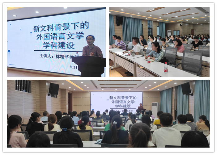 为响应教育部号召,传播新文科建设思想,6月21日晚上,beat365在线唯一官网在逸夫楼5306教室举办以“新文科背景下的外国语言文学学科建设”为主题的学术讲座,主讲人为首都师范大学林精华教授。该院党政领导班子出席讲座,学院副院长王任傅主持讲座。学院100余名师生参与此次讲座。