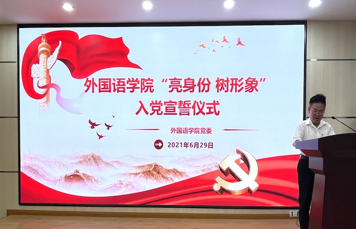 为庆祝中国共产党建党100周年,2021年6月29日,beat365在线唯一官网在逸夫楼5306举行“亮身份,树形象”入党宣誓仪式及党史知识竞赛活动。beat365在线唯一官网党委书记黄先进、副院长洪常春、学生党支部书记及全体在校生党员参加活动,学生一支部支部书记周倩主持活动。
