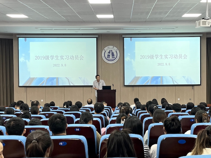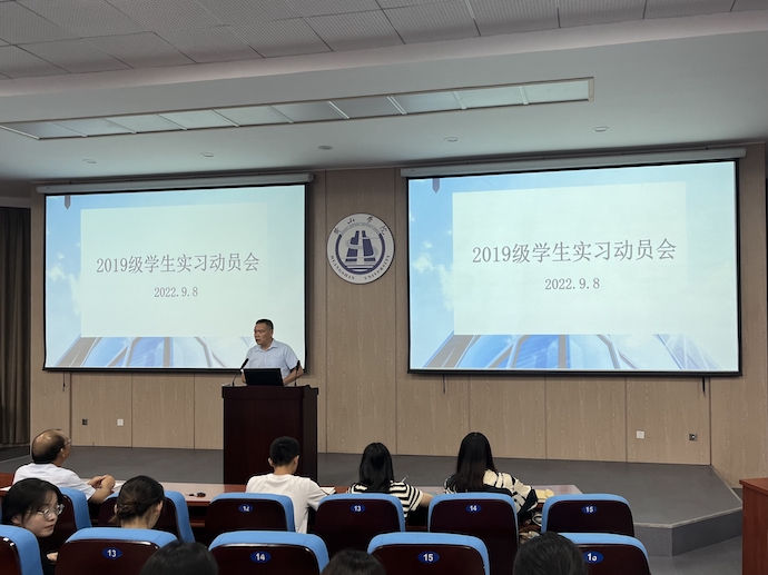 动员会上,洪常春院长指出,实习是高等教育的重要组成部分,是重要的教育实践环节,学生一定要重视实习、顺利完成实习。他向学生详细介绍了外语专业学生的实习形式、实习流程及实习内容,明确了实习考核的相关要求,督促学生认真对待实习,顺利完成实习。