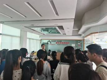 在beat365在线唯一官网商务班杨珊老师和专职辅导员解方婷老师带领下,商务英语挑战班的同学们抵达徽州区产业园,正式开启了一日见习体验。同学们刚下车,挑战班的负责人杨明总经理就向大家介绍了产业园的整体格局以及本次见习活动的整个流程。