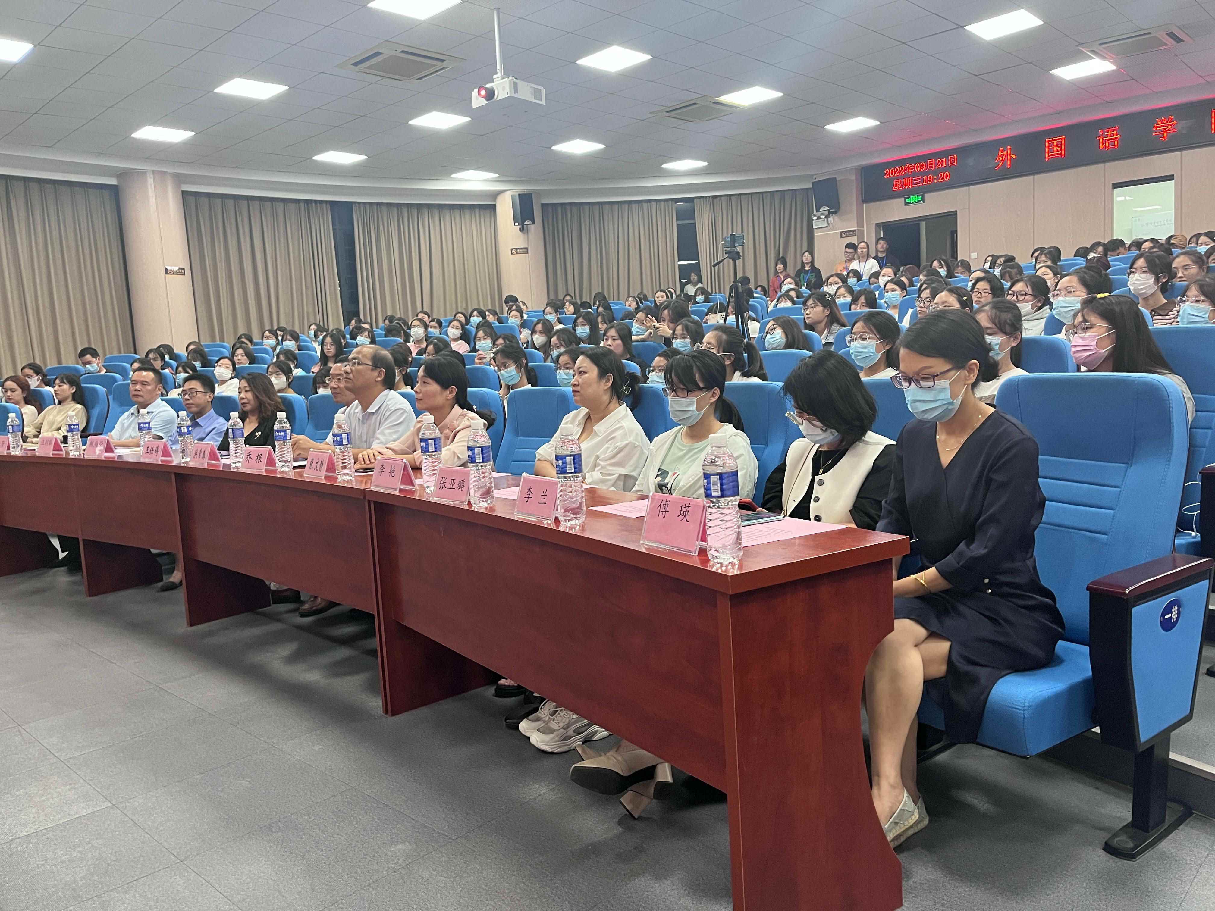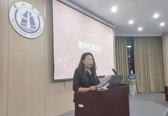 教师代表纵兆荣教授致欢迎词,她从“大学的意义”“语言的学习”“校园的生活”等三个方面向全体新生提出殷切期望,希望全体学生珍惜韶华,勤奋学习,提升专业素养,立志成人成才;20级英语专业闻嘉慧代表老生发言,她分享了自己三年的大学生活感悟和自身成长经历,建议新生要进行自我规划,积极立足当下,不为自己设限,敢于迎接挑战;22级英语专业王雪代表新生发言,她满怀着对未来大学四年生活的憧憬和期待,希望和大家一起树立远大的奋斗目标,不断提升自己,争做一名品学兼优的好学生。