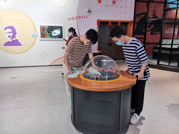 在黄山市科技馆,同学们被丰富多样的科技展品所吸引,迫不及待地投入到观察和探索之中。在光影之绚、运动之律、天籁之音、数学之魅、电磁之奥五个主题展区,学生们积极与展品进行互动体验,领悟探索声光电力磁等常规科学知识。