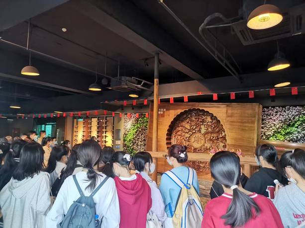 在中国徽菜博物馆,学生在讲解员的带领下犹如穿越时空隧道,身临其境,触摸徽菜发展的历史脉络,领略徽州独特之风韵,品味徽菜诱人之美味、感受徽民之练达与智慧。