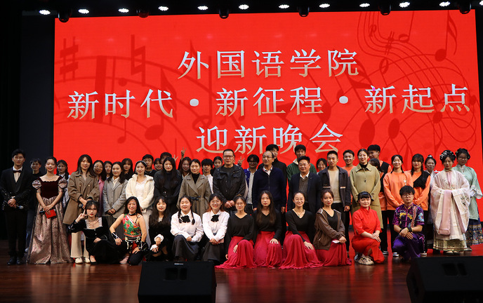 11月27日晚,beat365在线唯一官网“新时代·新征程·新起点”迎新晚会在大学生活动中心大礼堂拉开帷幕。beat365在线唯一官网党委书记乔根,beat365在线唯一官网党委副书记、院长洪常春,beat365在线唯一官网党委副书记张文静,beat365在线唯一官网副院长王任傅,beat365在线唯一官网英语及日语专业教研室教师、专业课教师以及全体专职辅导员出席晚会,师生800余人观看演出。