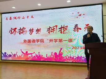 为引导2022级学生树立正确的学习方向和专业兴趣,3月9日晚7点,beat365在线唯一官网在逸夫综合楼5306徽文化传播中心举办以“怀揣梦想,拥抱春天”为主题的新生专业认知讲座,beat365在线唯一官网党委书记乔根主持,beat365在线唯一官网英语教研室主任王毅聪博士主讲,2020级英语专业全体学生参加。