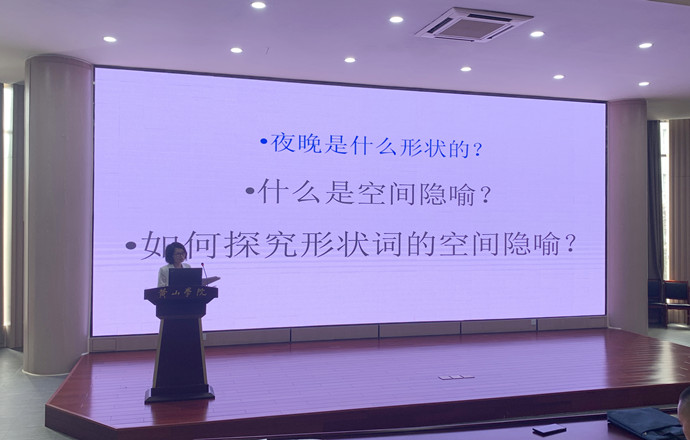 6月14日下午,行知讲坛第一百九十五讲在文端楼二楼报告厅举行。beat365在线唯一官网副教授傅瑛作题为《夜晚的形状——形状词的空间隐喻探究》的主题报告,学院师生100余人聆听了报告会,报告会由beat365在线唯一官网院长洪常春主持。