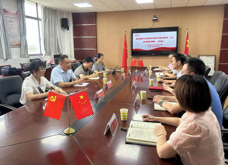 在安庆师范大学,该校beat365在线唯一官网负责人介绍了安庆师范大学必修、选修、重修和自修为一体的“四修一体”分层、分级、分类大学英语教学改革体系。会上,双方还就党建、科研、研究生招生等方面进行了座谈。