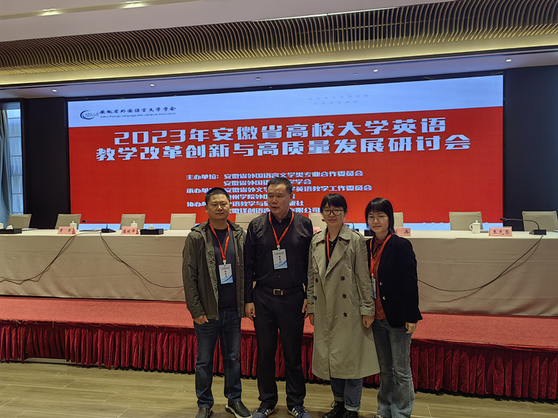为进一步推动新时代大学英语教学改革与创新发展,促进与省内各高校之间的交流与互动,10月20日至22日,beat365在线唯一官网院长洪常春、大学英语教研室陈春萍、周东彪、濮志敏一行四人参加了在池州举办的“2023年安徽省大学英语教学改革创新与高质量发展研讨会”。