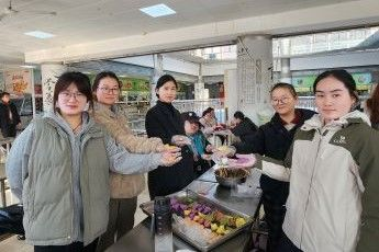 活动前期,班委会通过线上问卷征集同学意见,最终选定白菜猪肉、韭菜鸡蛋等经典馅料,并与食堂协调场地及物资。活动当日,班委提前抵达布置操作台,分置饺子皮、馅料及工具,确保流程有序。上午10时,活动正式拉开帷幕。同学们分组协作,经验丰富的同学示范擀皮、包馅技巧。从捏生疏到手法娴熟,大家互帮互助,现场欢声笑语不断。随着热气腾腾的饺子出锅,同学们围坐分享劳动成果,畅谈家乡冬至习俗,在美食与交流中深化了对传统文化的理解。
