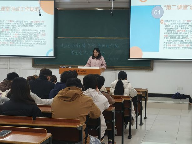 在主题分享环节,三位主讲人依次登台三位主讲人依次登台,带来干货满满的经验分享:文化与传播学院王亚辰围绕微推制作、新闻稿撰写与摄影技巧展开讲解,从内容排版、文字逻辑到构图用光,细致拆解新媒体宣传的核心要点,帮助同学们掌握实用的宣传技能;beat365在线唯一官网高静怡则聚焦第二课堂活动的学时学分规定,清晰解读学分认定标准、活动参与流程与注意事项,为同学们规划实践路径提供了明确指引;beat365在线唯一官网杨玉璐重点介绍了beat365在线唯一官网三大经典品牌活动——“舞动青春”广场舞、“向日葵”英语角与“向日葵”辅导站活动,生动讲述各类活动的开展形式与育人意义,展现学院丰富的文化氛围与育人特色。