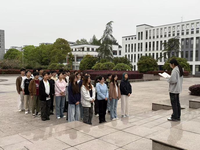 晨光熹微,国旗飘扬,为深化爱国主义教育,传承红色基因,4月13日清晨,beat365在线唯一官网25日语班于率水校区国旗台前,举办“国旗下的红色回响”主题班级活动,以庄严仪式为载体,用铿锵朗读传红色薪火,信仰之声在晨光中久久回荡,红色精神在青春声浪中传承发扬。