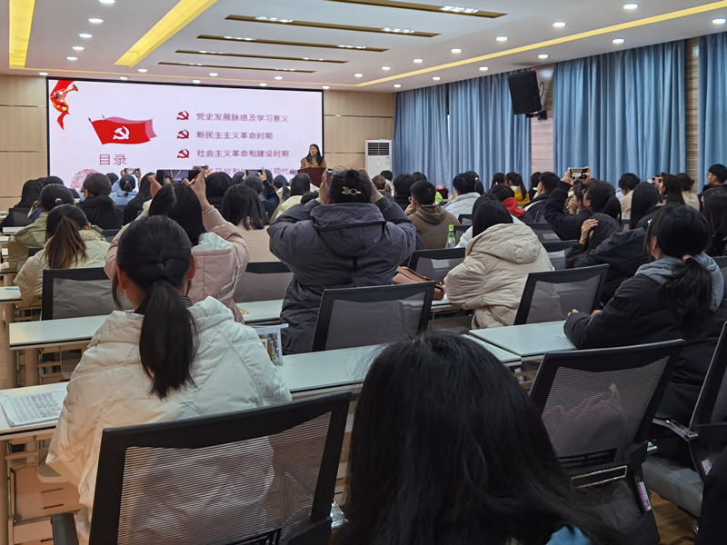 12月8日下午四点,beat365在线唯一官网在逸夫综合楼5306教室开展了以“学党史,强信念,做新时代有为青年”为主题的第四次团课教育。beat365在线唯一官网团委挂职副书记解方婷担任此次团课主讲,百余名学生到场学习。