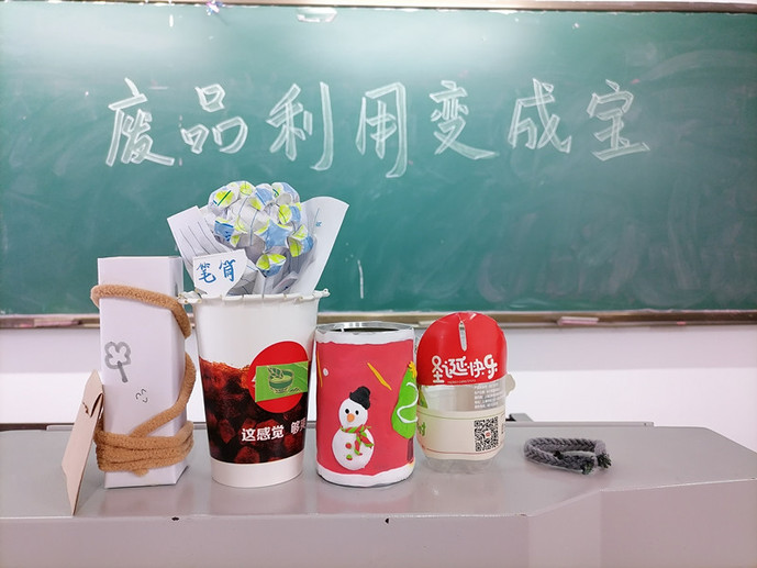 本次废品再利用活动的举办,有利于提高同学们的想象力和创造力,让同学们在潜移默化中树立环保观念,更好地投身于节约型校园的建设之中。