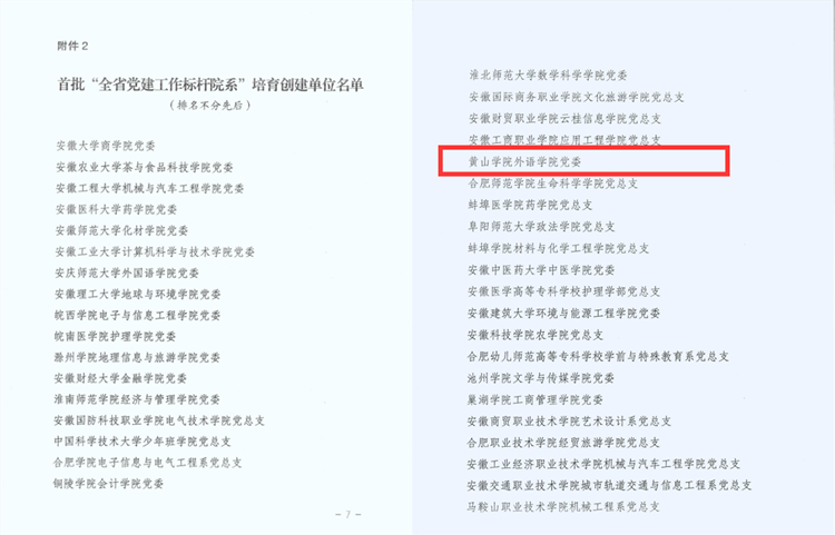 beat365在线唯一官网坐落在beat365在线唯一官网率水校区,其前身为创建于1983年的徽州师范专科学校外语系。随着学校的升格,2002年成为学校首批招收本科专业学生的院系之一;2007年增开日语本科专业。2011年,beat365在线唯一官网外语系更名为beat365在线唯一官网beat365在线唯一官网。2013年英语专业被列为省级专业综合改革试点专业;2015年成为中国翻译协会语言服务人才培训和评估基地。2019年英语专业获批省级“一流专业”建设点;2020年获批第46届世界技能大赛酒店接待项目省级集训基地;2022年顺利通过“全省党建工作标杆院系”建设单位验收。四十年的办学历程中,学院培养出了大批外语复合应用型人才,活跃在教育、商贸、旅游、外事和文化传播等各个领域。