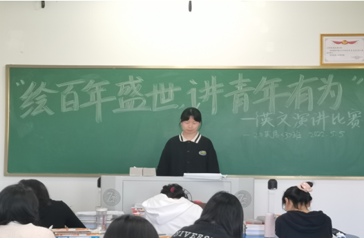 5月5日下午3点至5点,在逸夫楼5201-1教室,20英语3班举办了绘百年盛世,讲有为青年”英文演讲比赛。比赛正式开始前,学习委员带领同学们了解英文演讲比赛的规则,负责主持此次活动并带动现场参与比赛氛围。选手抽签依次上台进行演讲。同学们在演讲中分享关于党史的“我的青春感悟”“我的初心故事”“我的影片观后感”,重温光荣岁月,激发了爱国爱团的热情颂扬民族精神,沿着先辈的光荣路程,为完成自己的青春使命不断努力。从自身感染听众勇做走在时代前列的奋进者、开拓者、奉献者,以昂扬的姿态迎接党的二十大胜利召开。