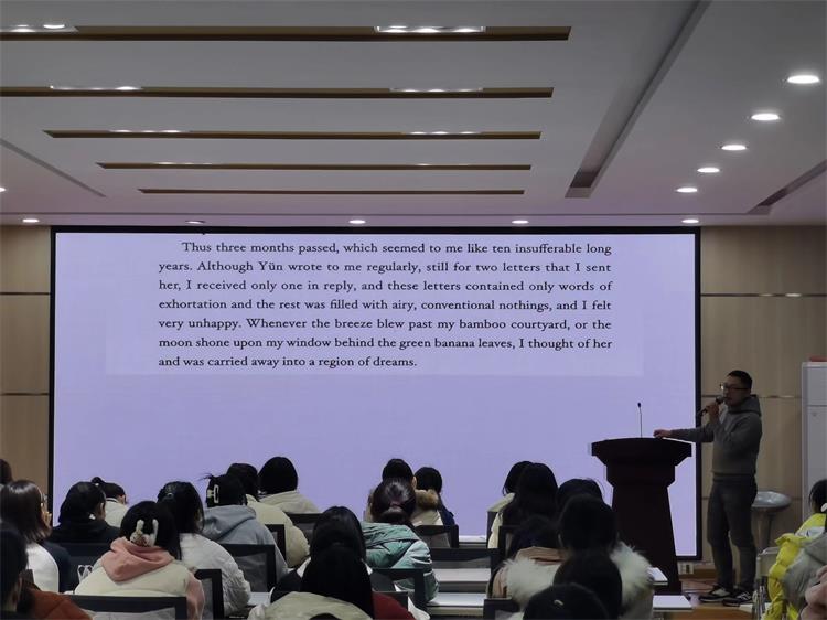 12月12日上午,beat365在线唯一官网开展21级学生读书会系列活动第二期,分享英译本《浮生六记》(林语堂译)。读书会由beat365在线唯一官网教工第一党支部书记郭飞老师主讲,近百名21级beat365在线唯一官网学生参加。