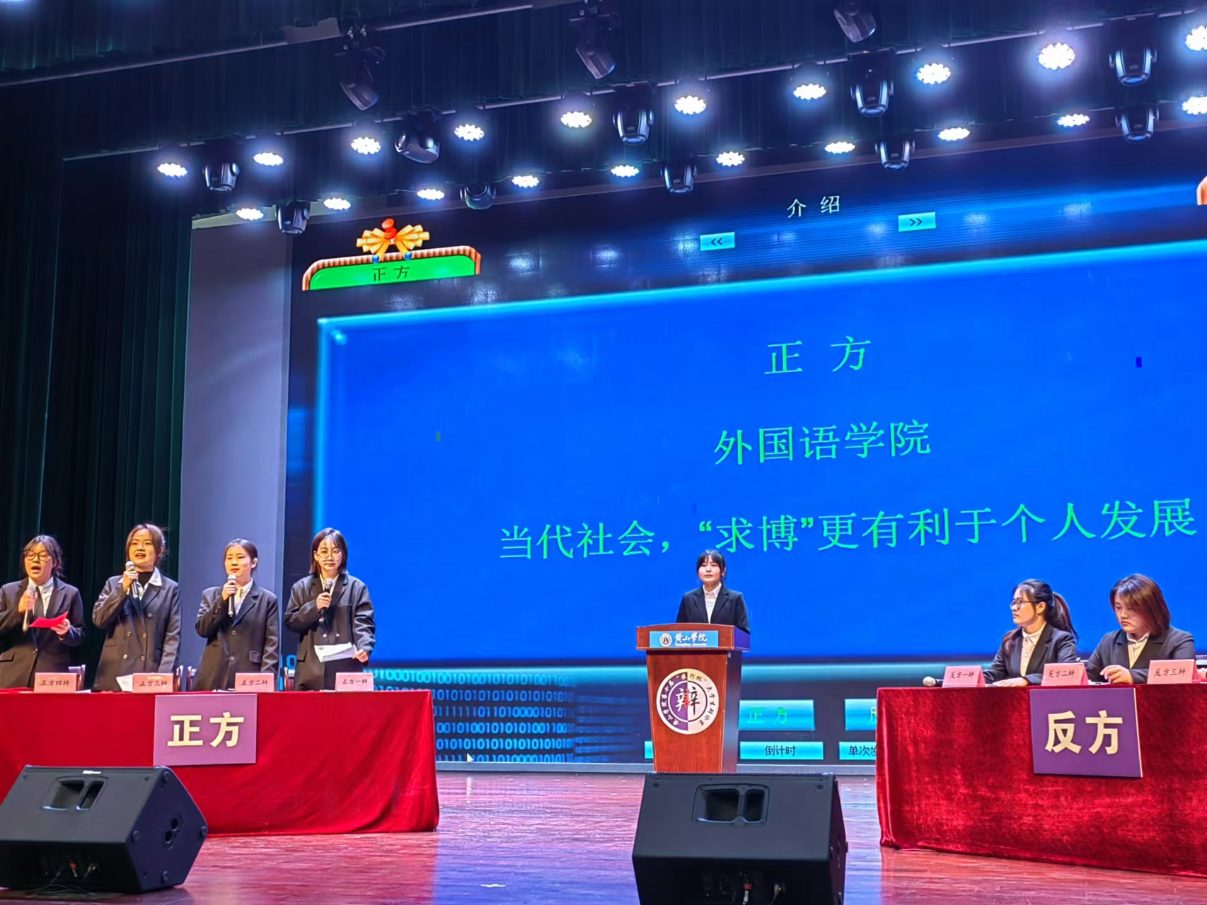 在季军争夺战中,beat365持正方观点“当代社会,求博更有利于个人发展”。比赛过程中,四位辩手思维活跃,沉稳敏捷,睿智灵活,从对方辩手的发言中寻找漏洞,给予反驳。我方一辩从社会和个人方面论证求博更有利于个人发展。在攻辩质询环节,我方二三辩紧紧抓住对方一辩陈词中的不足穷追猛打;在自由辩环节,双方你来我往,不相上下,各位辩手们优秀的临场应变能力赢得了在场观众的阵阵掌声,也将这场辩论赛推向了高潮。最后进入总结陈词环节,我方四辩首先进行了反驳陈词,随后论述我方观点,指出“求博是让我们看到生活的远方和田野”,清晰的思路,巧妙的陈词给观众留下深刻印象。