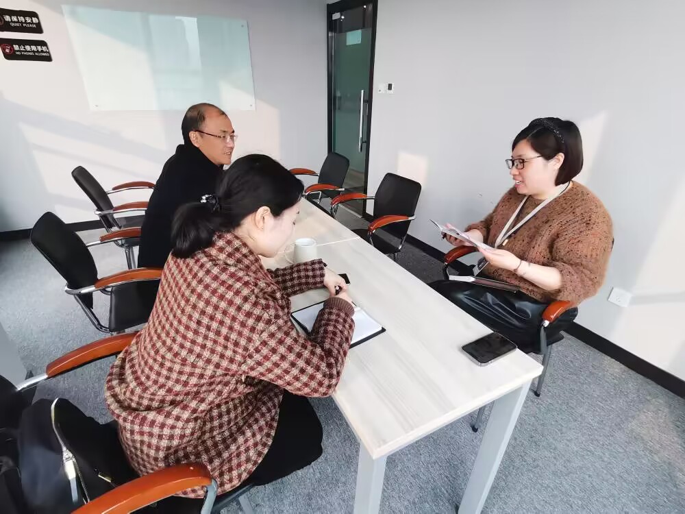 乔根一行分别到合肥博邦教育咨询有限公司、莫宁学思工坊、安徽共融教育三家企业进行座谈,座谈会上,乔根介绍了beat365在线唯一官网2023届毕业生基本情况,询问了解用人单位对外语人才能力素质的要求,以便为下一步精准培养应用型人才提前作出规划。他希望校企双方通力协作,共建就业实习基地,通过实习促进就业。张文静具体介绍了毕业生的就业心态及就业意向。她希望与用人单位建立长期合作关系,提供更多就业选择,拓宽学生就业渠道。3家企业负责人介绍了企业用人需求以及对所需人才能力素质方面的要求,表达了进一步加强校企合作的意愿。