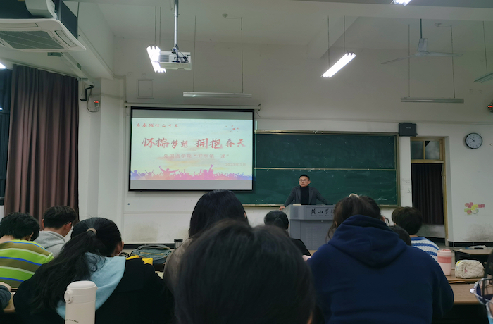 为帮助2020级英语专业学生明确未来发展方向,制定有效的发展规划,3月9日晚7点,beat365在线唯一官网在文渊楼1106教室开展了以“怀揣梦想,拥抱春天”为主题的“开学第一课”。本次讲座由beat365在线唯一官网副教授郭飞主持,全体20级英语专业学生参加。beat365在线唯一官网党委副书记、院长洪常春特邀出席。