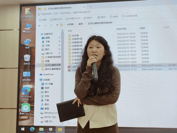 会上,9个班级团支部书记轮流进行2022年度工作汇报,分别从支部构成、团员管理、制度落实等方面汇报本班团支部工作,以及下一步工作打算。大家围绕团支部组织文体活动、志愿活动等开展情况,向大家展示了团支部朝气蓬勃、积极向上的精神面貌和丰富多彩的课外生活。