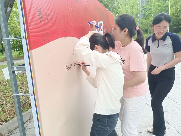 传五四薪火,话青春本色,为进一步弘扬五四精神,激励青年承担新时代使命,5月4日下午,beat365在线唯一官网团委于逸夫综合楼广场举办“五四青年说”系列活动之“我为青年说句话”签名墙打卡活动。