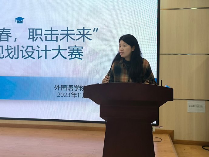 大赛分成长组和就业组两个赛道,共13位选手参加。比赛分职业规划阐述和评委提问两个环节,参赛选手从自我认识、职业认知、目标规划、制定行动策略、方案修正调整及备选方案等几个方面进行阐述,评委根据参赛选手的阐述以及规划方案设计进行提问。比赛中,同学们的职业生涯规划设计结构完整,目标制定贴切合理,演讲过程富有感染力。经过将近三个小时的角逐,最终22日语1班的郭雨婷和22英语1班的陈鑫悦脱颖而出,获得一等奖。