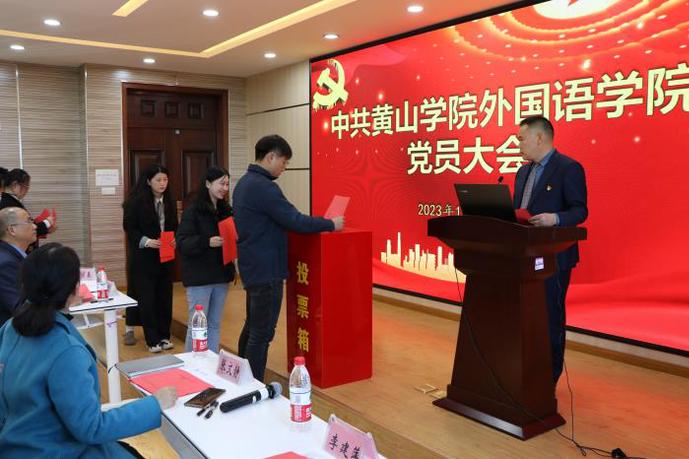 11月22日下午,中国共产党beat365在线唯一官网beat365在线唯一官网委员会换届选举党员大会在逸夫综合楼5306徽文化传播中心隆重举行。大会由院党委副书记、院长洪常春主持。大会在雄壮的国歌声中拉开帷幕。
