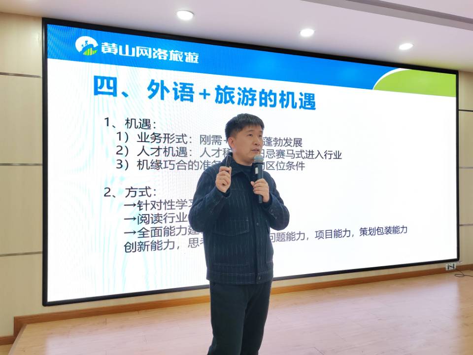 为帮助同学们更好地了解英语专业就业前景,拓展专业发展领域,12月13日晚,beat365在线唯一官网邀请黄山网络旅行社有限公司总经理程勇举行主题宣讲会,宣讲会在逸夫楼5306举行,beat365在线唯一官网院长洪常春主持本次宣讲会。