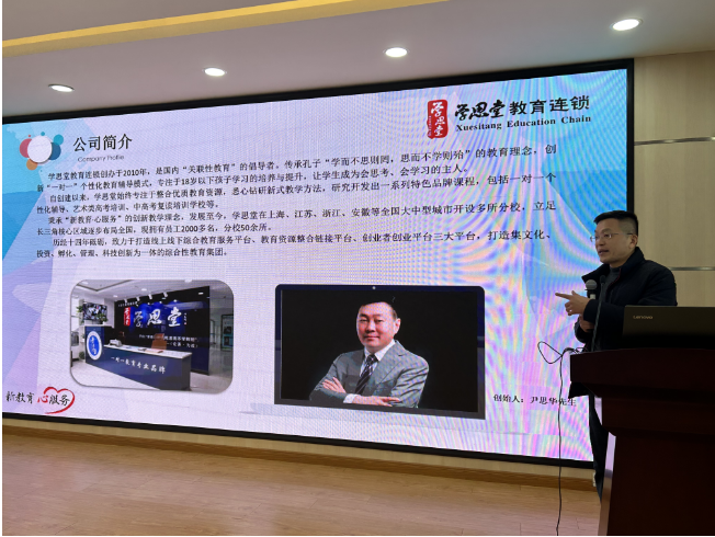 宣讲会上,学思堂教育连锁负责人通过播放宣传片、PPT展示,向同学们详细介绍了企业基本情况、业务体系、企业文化、晋升通道、住宿环境、薪资待遇、培训体系、招聘岗位等方面。现场气氛热烈,学生积极提问,用人单位逐一解答。