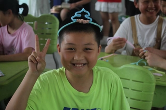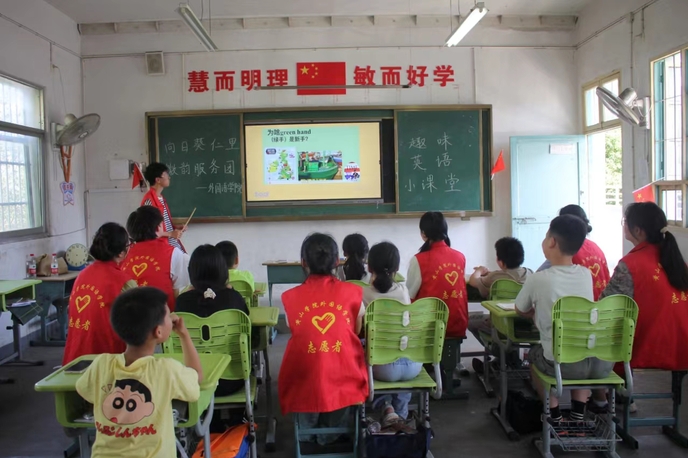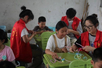 7月6日,实践服务团和孩子们进行英语小游戏,孩子们在游戏中不仅复习了刚学的英语知识,还学会了团队协作。接着,组织了一次扭扭棒手工制作活动,孩子们用五彩斑斓的扭扭棒制作出了各种可爱的小动物和花朵,他们的创造力和动手能力得到了充分展现。最后,带着小朋友们一起学唱了一首的英文歌《rainbow》,欢快的旋律和简单的歌词让孩子们很快就学会了这首歌曲,教室里充满了欢声笑语。