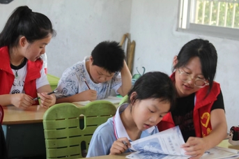 7月4日下午两点,实践团成员们来到学校,就立马进入辅导状态。针对孩子们不同的学习需求,进行了一对一或小组式的作业辅导。从语文的生字词,到数学的应用题,再到英语的单词拼写,耐心地解答孩子们的问题,帮助他们巩固所学知识。看着孩子们认真学习的模样,大家深感此次活动的意义所在。