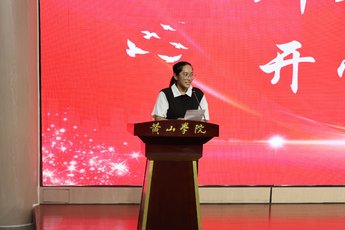教师代表李建萍老师致欢迎词,她向新生介绍了学院师资力量以及丰富多彩的课外活动,鼓励新生积极参与,全面发展自己。同时,也表示将竭诚为新生提供学习上的指导和帮助,助力他们顺利度过大学适应期。最后她向所有新生提出四点建议,一要尽心涤尘,从容应对;二要爱心蓄能,明德向上;三要专心启智,琢璞成玉;四要恒心励志,滴水穿石。