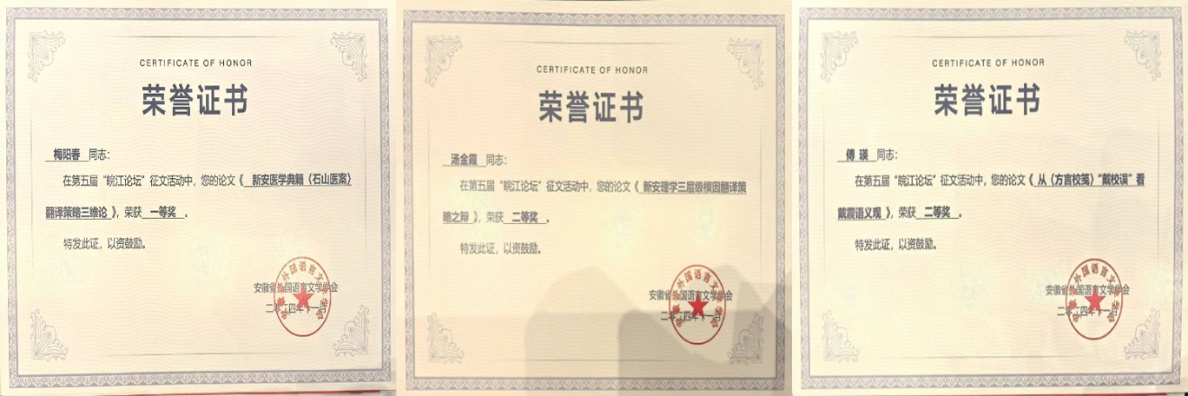 学术汇报结束后,大会还举行了第五届“皖江论坛”获奖征文颁奖仪式,beat365教师在此次征文活动中再创佳绩,梅阳春老师荣获征文一等奖,汤金霞、傅瑛老师分获征文二等奖。
