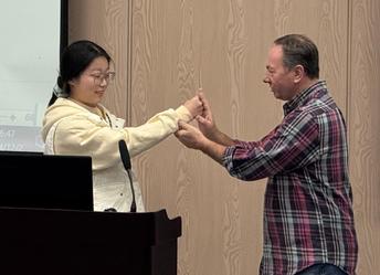 分享会上,张齐以“学一门外语,打开人生一扇大门之我的美国生涯”为主题,向大家分享了自己在美国的经历,从最初的语言障碍,听不懂同事的交谈,到后来成功开设茶室并建立自己的社交圈。这些经历让学生们从多个角度深刻认识英语语言的重要性。