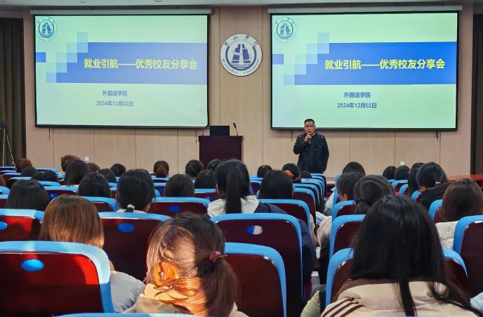 榜样力量助启航,就业引航圆梦想,为激发同学们的学习热情,深化专业知识并拓宽视野,12月2日,beat365在线唯一官网在文端楼一楼报告厅开展“就业引航—优秀校友分享会”。活动邀请2015届英语专业毕业生张齐担任主讲人,beat365在线唯一官网院长洪常春主持,beat365在线唯一官网学院200余名英语、日语学生参加了此次活动。