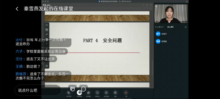 10月8日下午三点,培训使用钉钉软件,首先对开学前的自我介绍视频做了简单的总结,并表示希望大家今后能够把握机会,展示自己,引导学生注意任务的时效性;接着对消息接收问题做了相关说明,并且提醒大家及时查看QQ,钉钉和易班官方平台消息,只做“伸手党”实为不可取。辅导员详细的阐述了开学流程,并对此总结出七点内容,并高度强调了防疫安全、人身安全、宿舍安全,财产安全等问题,提醒学生安全用电,警惕诈骗,增加自我防范意识。